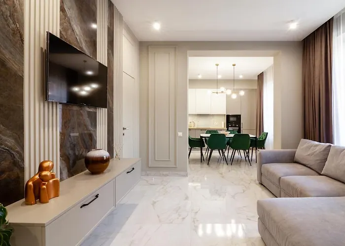 L'appartement Leogrand Vip Apartments On Lesi Ukrainky 7 est situé en plein centre de Lviv, à seulement 600 mètres de l'Eglise dominicaine. Les clients peuvent utiliser du Wi-Fi pour des raisons professionnelles ou de loisirs.